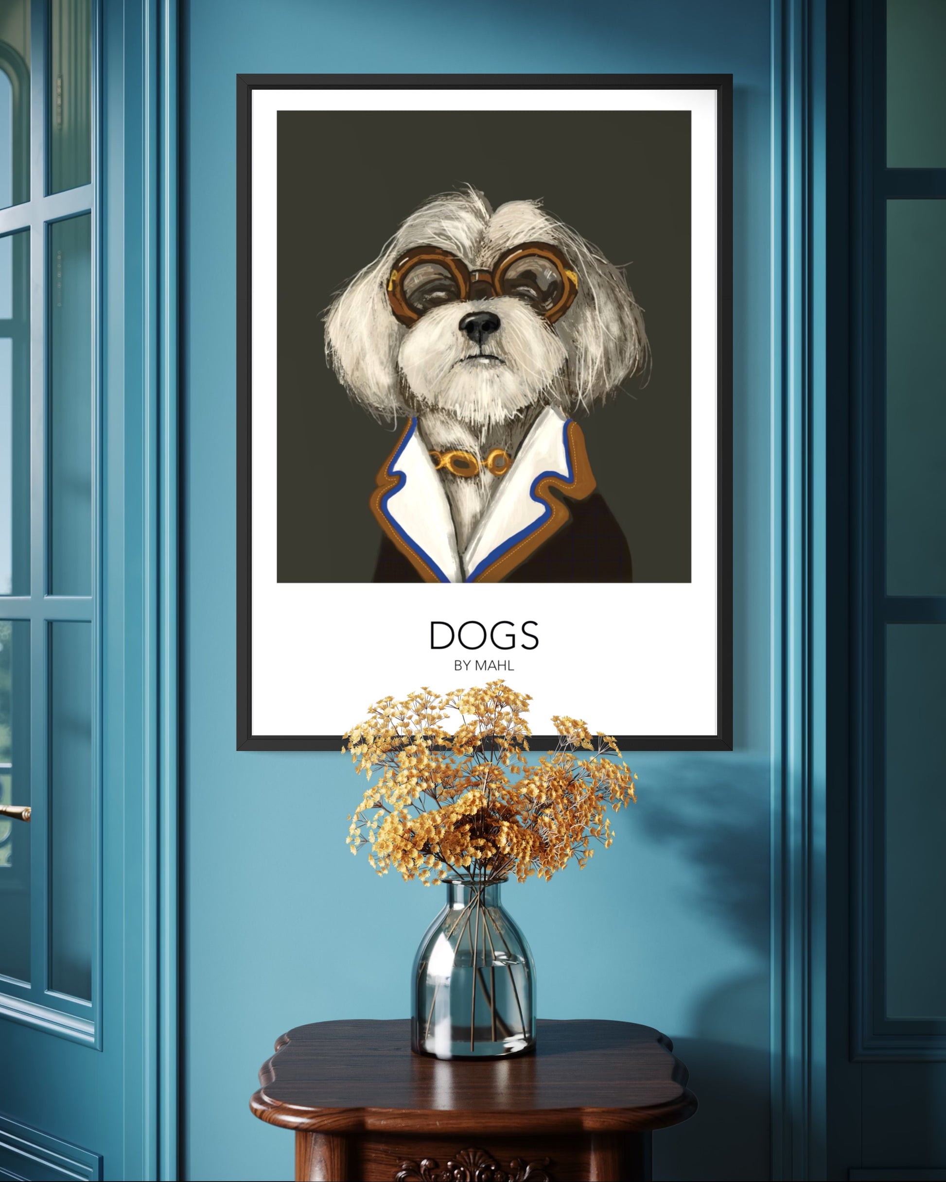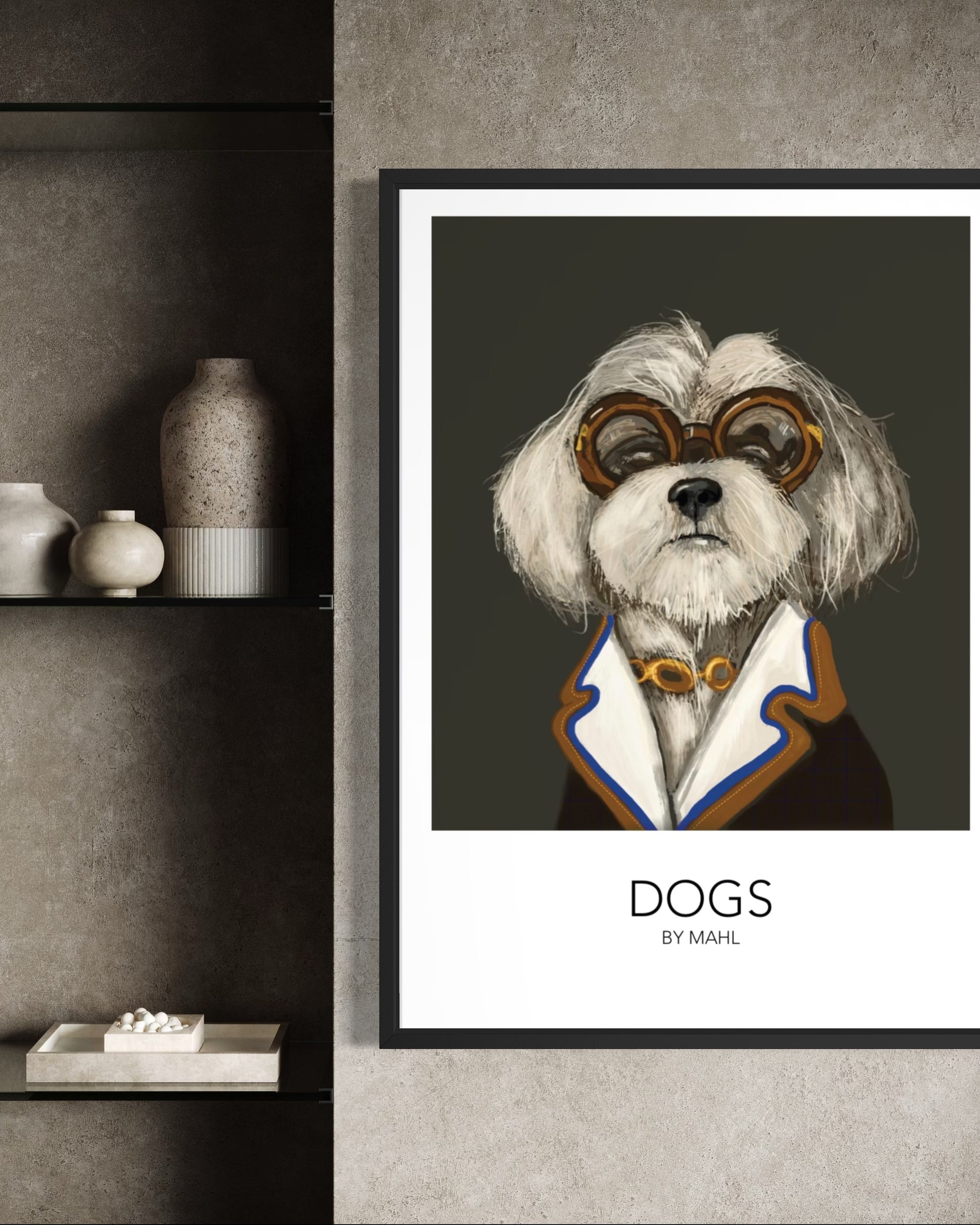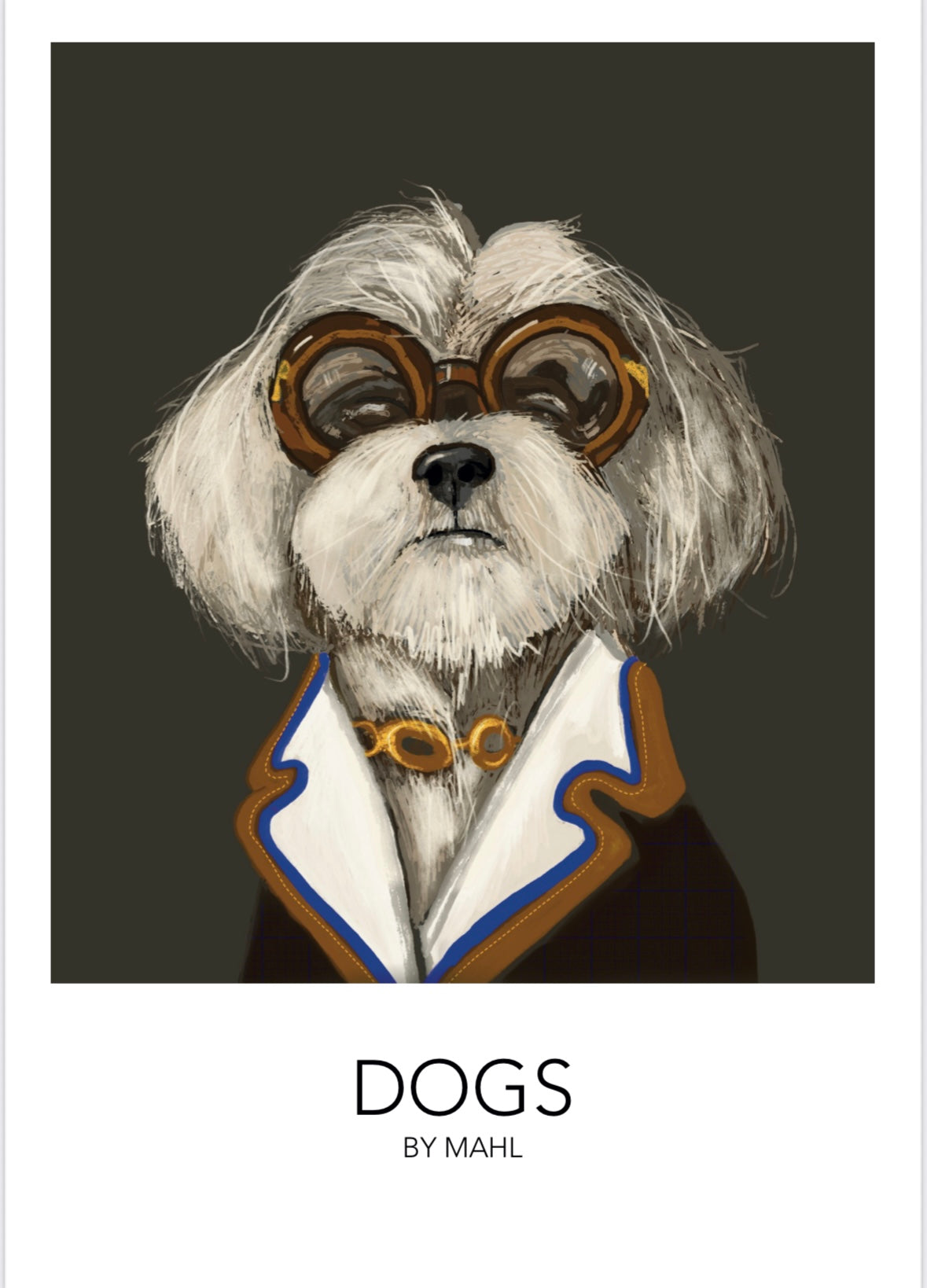 Elsker du også hunde? Det gør vi her på siden og her får du et værk som afspejler de menneskelige sider hos Coton de culear, værket er lavet af Mette Ahlgreen 2025 og findes i A3